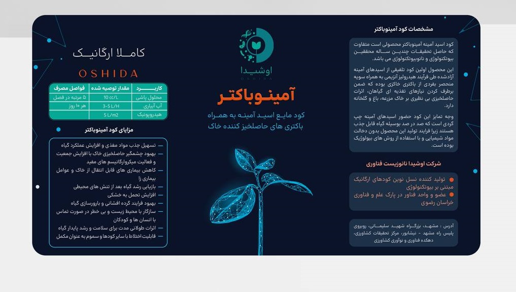 - کود اسید آمینه آمینوباکتر محصولی است متفاوت که حاصل تحقیقات چندین ساله محققین بیوتکنولوژی و نانوبیوتکنولوژی می باشد.